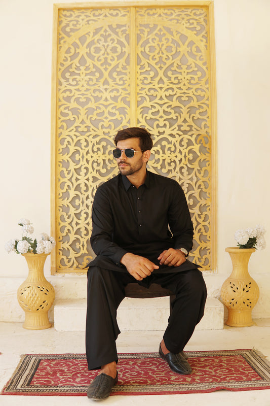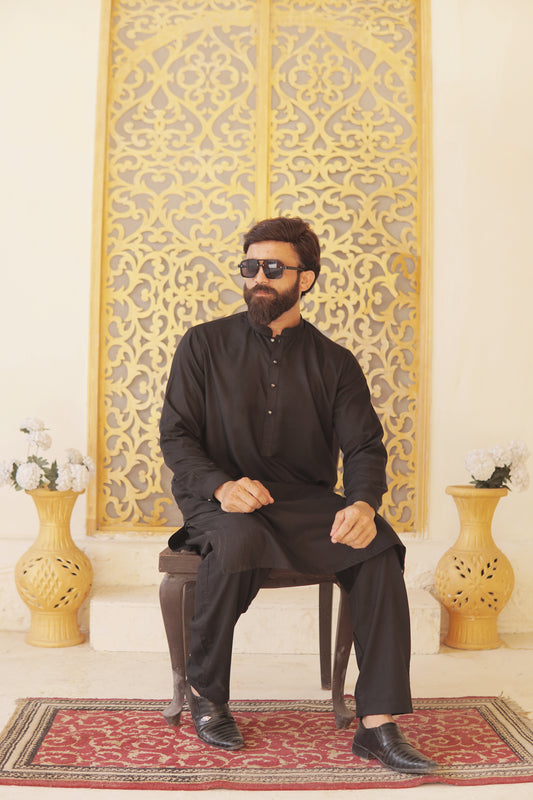 Black Cotton Premium Finish Shalwar Kameez-BCPFS(SK)001