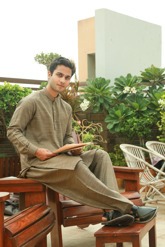 Olive Green Textured Shalwar Kameez-OLG(SK)001