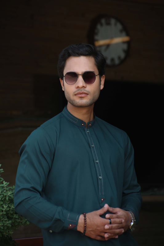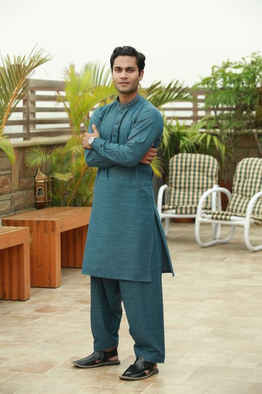 Teal Blue Textured Shalwar Kameez-TB(SK)001
